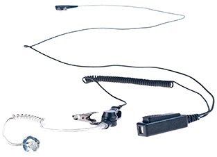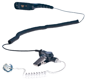 The commercial grade Listen Only Radio Attachment Kit is the ideal solution for monitoring radio communication in a discreet manner. The low profile cable plugs directly into the radio’s accessory port and allows the user to operate the radio normally while all communication is heard through the ear piece.
