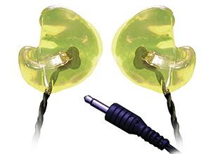 These earphones can plug into any audio device with a standard 3.5 mm audio outlet. Perfect for uses such as exercising, motor-sports, or traveling. The permanent durable cable exits at the bottom of the earmolds and therefore sits flush against the ears; this provides a comfortable solution for active users, or those wearing helmets.